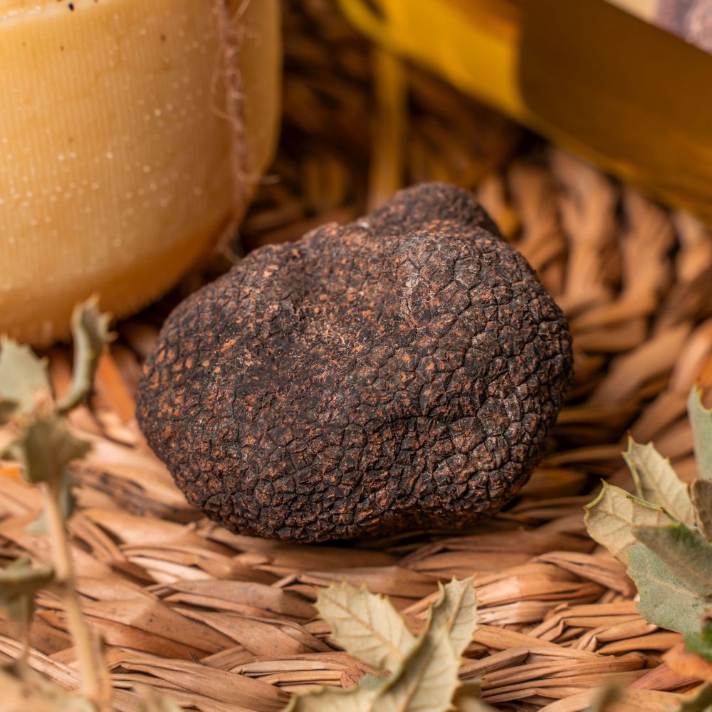 Viene compuesto por una trufa negra de entre 25 y 30g de primera calidad. Además, influye un queso curado trufado de la quesería artesana Zariche, situada en Celadas (Teruel), y que cuenta con nuestra trufa negra ecológica para elaborar sus quesos. Queso de leche de oveja pasteurizada y trufa negra. Por último, influye una botella de 250ml de Aceite de Oliva Virgen Extra con Trufa.