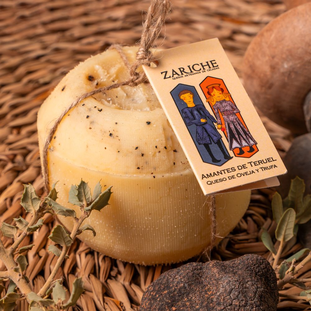 Viene compuesto por una trufa negra de entre 25 y 30g de primera calidad. Además influye un queso curado trufado de la quesería artesana Zariche, situada en Celadas (Teruel), y que cuenta con nuestra trufa negra ecológica para elaborar sus quesos. Queso de leche de oveja pasteurizada y trufa negra. Queso de 350 gramos (aproximadamente).