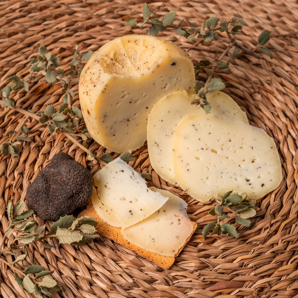 Queso de leche de oveja pasteurizada y trufa negra. Queso de 350 gramos (aproximadamente). Trufa de primera calidad de entre 25 y 30g.